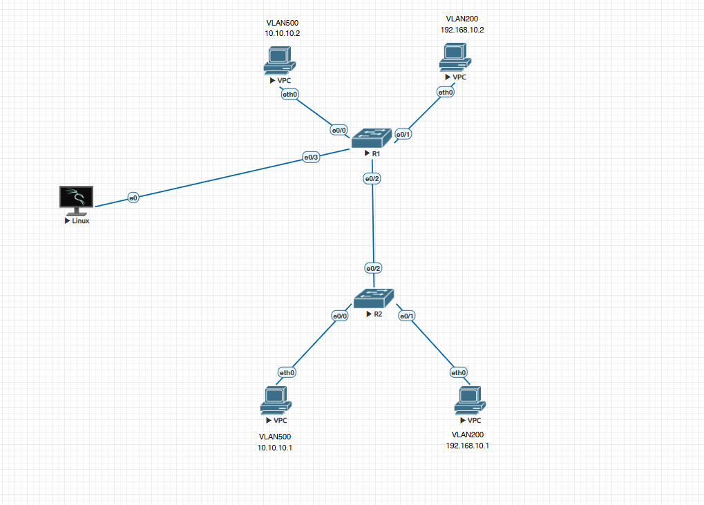 Порт к которому подключена kali linux преобразовался в trunk и на нём ходят все vlan от 1 до 4095 включая VLAN-ы 200 и 500.