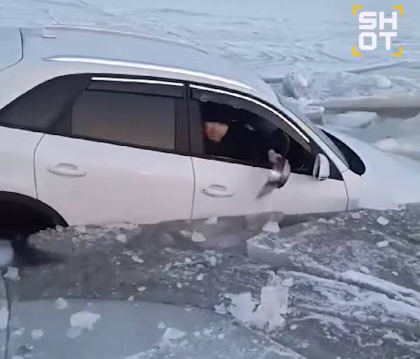 В России рыбак пытался вычерпнуть воду из тонущей машины миской