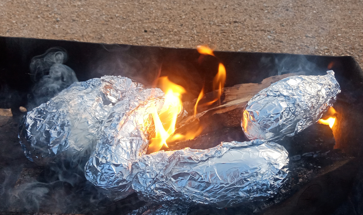 Ингредиенты: Баклажаны – 3 шт. Перец болгарский - 2 шт. Чеснок – 1 головка Зелень (укроп, петрушка) - 50 грамм Лимон – 1 шт. Соль – по вкусу Перец черный молотый – по вкусу Перец чили молотый – по вкусу Масло растительное – 50 мл. Фольга. Приготовление: Совсем не за горами сезон всевозможно вкусного приготовленного на мангале. Предлагаю Вам один из таких рецептов. Все как всегда просто, быстро, без лишней траты времени на одно блюдо. Все ингредиенты подготавливаем, промываем. Баклажаны протыкаем несколько раз вилкой и заматываем в фольгу, перец болгарский протыкать не надо, только заматываем в фольгу. И отправляем в мангал. Если готовите на углях, то овощи надо зарыть в эти угли минут на 15. Если готовите на дровах, то желательно наполовину прожечь дрова и выложить овощи, через минут 7 аккуратно, соблюдая технику безопасности, перевернуть. Далее достаем овощи из мангала и минут 15-20 их не разворачиваем. По истечению времени достаем аккуратно овощи из фольги и очищаем их от кожицы.