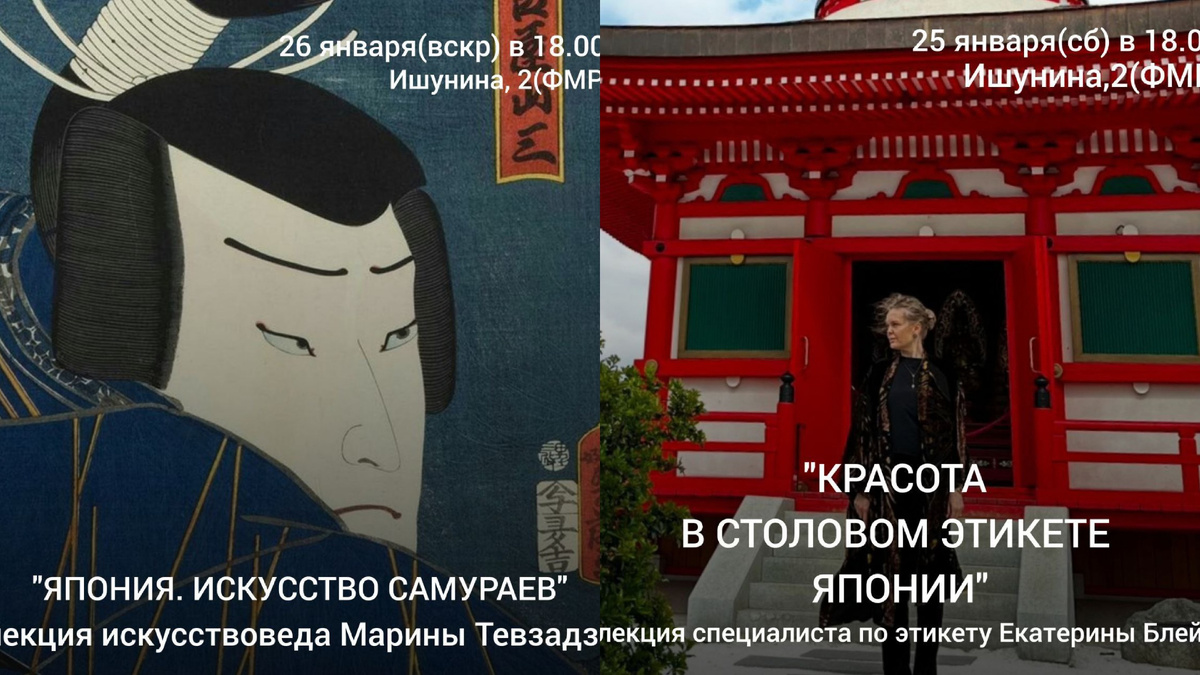 ЯПОНСКИЕ ВЫХОДНЫЕ В СПУТНИКЕ Япония к нам ближе, чем кажется - уникальная коллекция японских гравюр в краснодарском художественом музее им.Ф.А.Коваленко, японский парк с особой атмосферой и ресторан "Рётэй", где бережно сохраняются традиции и современность Мы предлагаем в эти выходные две лекции, чтобы узнать больше о культуре далекой страны восходящего солнца 25 января(сб) в 18.00 лекция «КРАСОТА В СТОЛОВОМ ЭТИКЕТЕ ЯПОНИИ» Читает специалист по этикету, увлеченный исследователь мировых этикетных традиций Екатерина Блей Поговорим об этикете страны гармонии и красоты - начнем с истоков японского этикета. Сезонность в Японии, искусство меню, особенности столового этикета, правила поведения за столом и правила сервировки ▪️25 января(сб) в 18.00 📍Ишунина, 2(ФМР) ▪️стоимость 2000 рублей ▪️продолжительность 2 часа с перерывом КУПИТЬ БИЛЕТ https://sputnik-culture.timepad.ru/event/3168836/ 26 января в 18.00 лекция "ЯПОНИЯ.ИСКУССТВО САМУРАЕВ" Читает искусствовед Марина Тевзадзе "Самураи – во