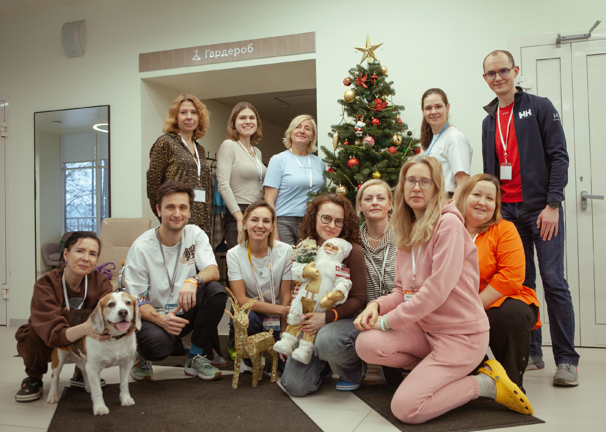 Знакомьтесь — это волонтёрская команда хосписа «Коломенское» (да-да, пёсик тоже считается!)
