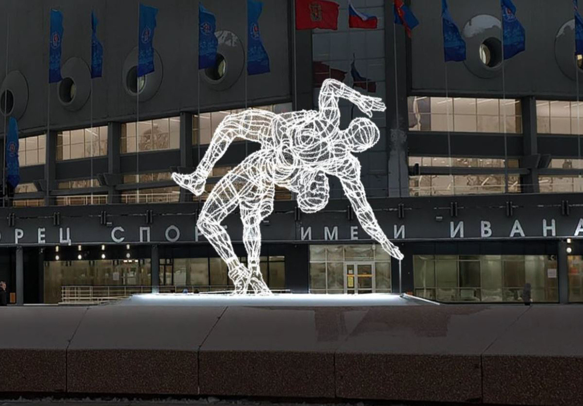 В честь соревнований около дворца спорта имени Ивана Ярыгина установили световую фигуру борцов.