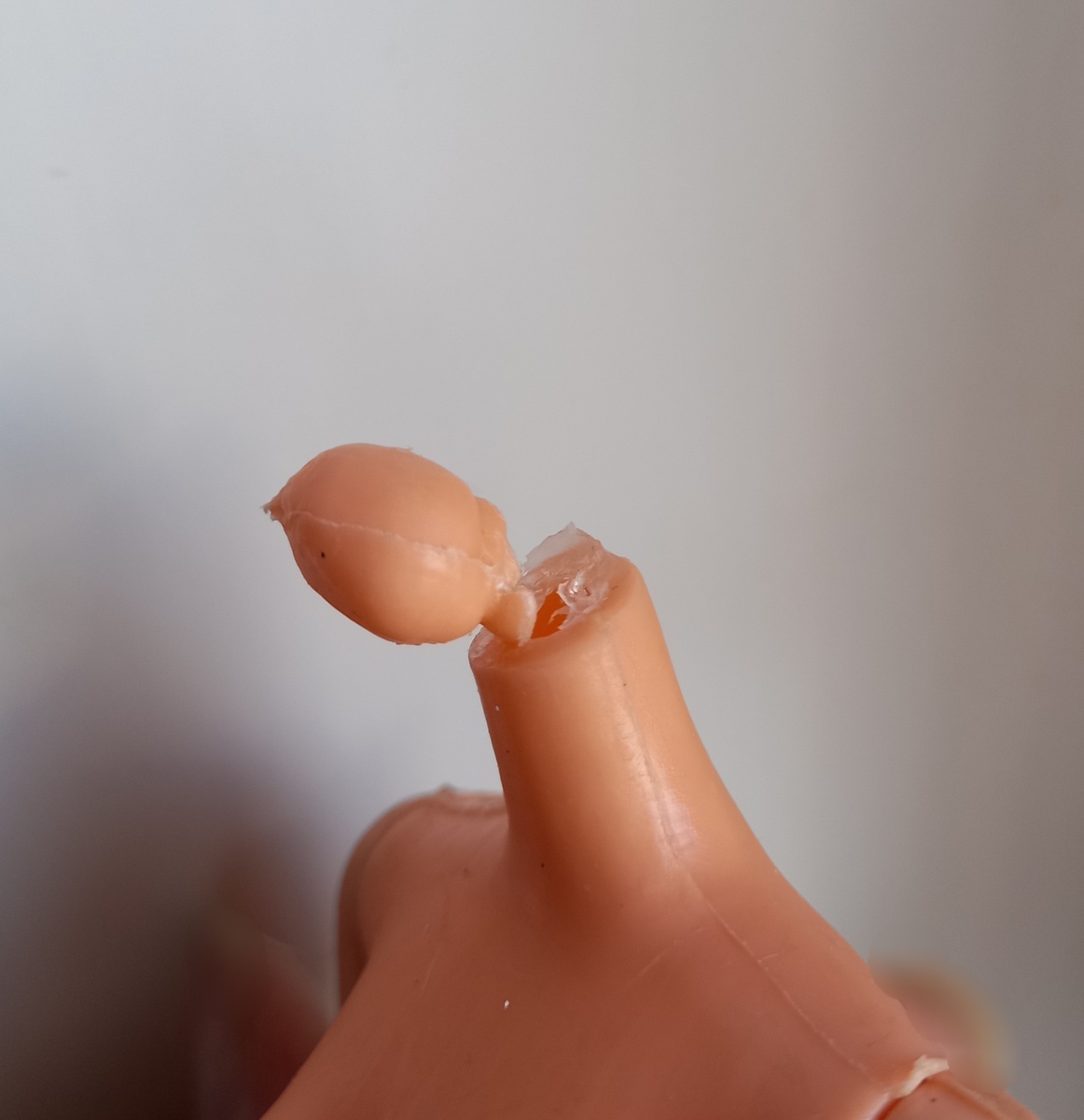 Всем привет! Попала ко мне девочка Sandy еще до Нового года. Была на родном теле . Случилась с ней одна неприятность. Когда я мыла девочку, сняла голову ,чтобы вымыть шампунь и повредилась шея у куклы. Точнее кружочек на который одевается голова. Он довольно тонкий. Пыталась склеить супер клеем. Всё схватилось, а при одевании головы снова этот кружочек треснул. Да к тому же еще больше. Решила пока поискать другое тело. Посмотрела свои запасы,но к сожалению шея с маленьким кружочком у меня только одна. К Сэнди подходит только такая шея. Слепила из того что было-нижняя часть от Сэнди и верхняя донорская. Временно будет так. Пока не найду тело ,может от какой-то недорогой куклы , с нужной шеей. Тела подороже сейчас все с якорями. Такая головушка не залезет на якорь,я думаю. Хочу узнать, если есть у кого опыт с волосами у такой куклы - как лучше быть? Можно ли их восстановить или лучше подстричь? Перепрошивать пробовала только один раз другую куклу . Нитками для вязания. Хочется к