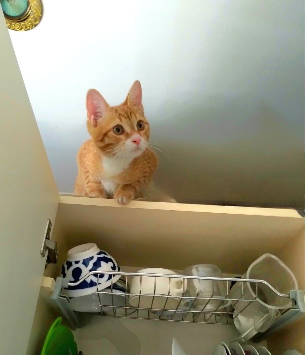 Кот всегда внимательно наблюдал, как чистая посуда из посудомойки исчезает в недрах шкафчика. И с удивлением осознал, что этот объект он ещё не исследовал. - Непорядок, - подумал Кот и начал разрабатывать операцию, согласно основным постулатам "внезапной проверки". Пушистый заранее обустроил себе "лёжку" под потолком и терпеливо сидел в засаде, ожидая, когда откроется шкафчик. Дождавшись своего звёздного часа, он немедленно свесил лапы, отрезая всем пути к отступлению. Разогнав зевак громким "мяу!", Кот начал инспекцию, но тут... О, ужас! На него свалился пластиковый контейнер! Возмущению Кота не было предела. Нападение на инспектора! Поднять всех "в ружьё", объявить план "Перехват", закрыть границы и наказать нападавшего, согласно Законам Хаммурапи. Обидчик был загнан в угол коридора и безжалостно растерзан. Я пошла за веником, а Кот отправился инспектировать свою лежанку. Вдруг и там назревает диверсия?