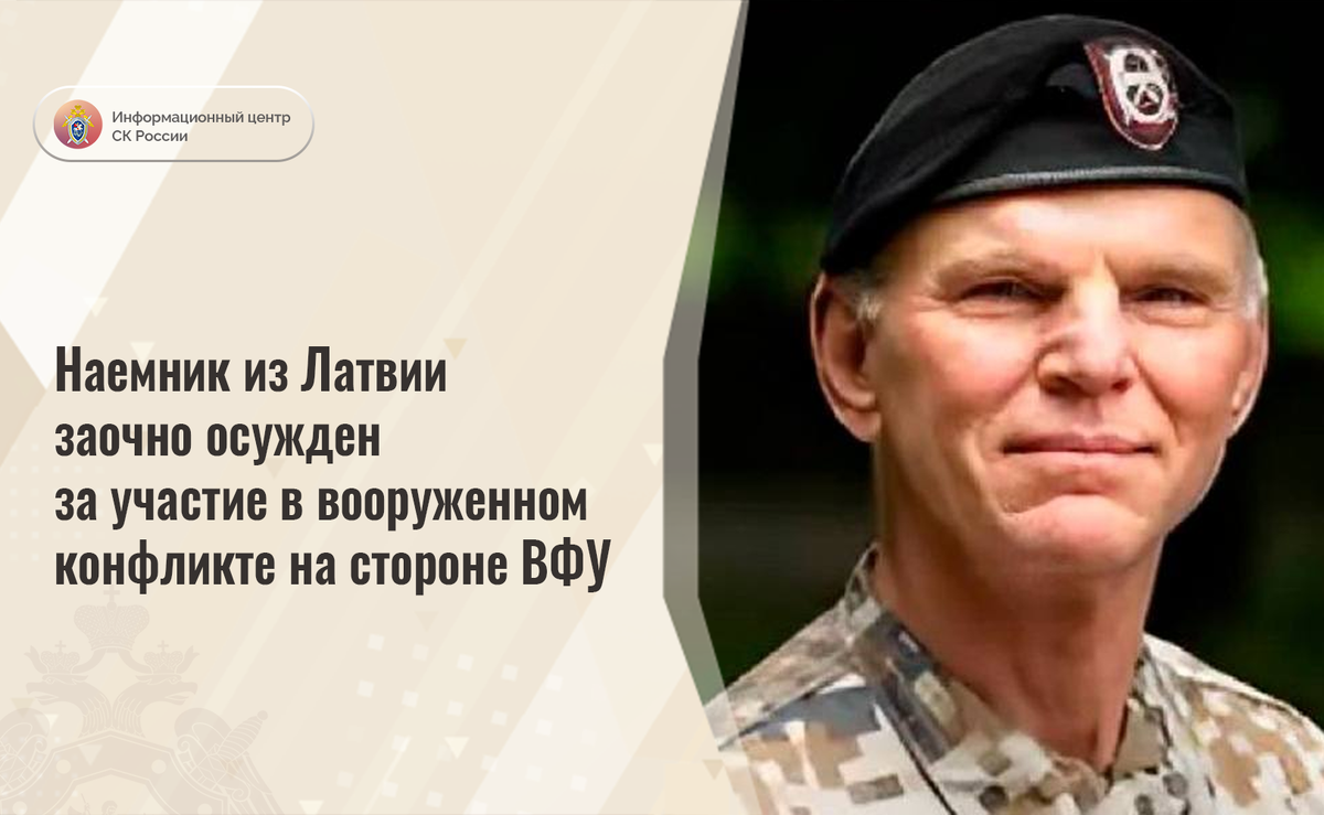 Наемник из Латвии заочно осужден за участие в вооруженном конфликте на стороне ВФУ Доказательства, собранные Главным следственным управлением Следственного комитета России, признаны судом достаточными для вынесения приговора гражданину Латвийской Республики Улманису Юрису Альбертсу. Он признан виновным в совершении преступления, предусмотренного ст.359 УК РФ (участие наемника в вооруженном конфликте). Следствием и судом установлено, что в 2022 году Улманис прибыл на Украину и вступил в военизированное формирование «Карпатская Сечь». Он прошел военную подготовку и был обеспечен огнестрельным оружием и боеприпасами, необходимым обмундированием и специальным снаряжением. С апреля по сентябрь 2022 года Улманис за вознаграждение участвовал на стороне украинских силовых структур в боевых действиях на территориях Украины и Донецкой Народной Республики против представителей силовых структур ДНР, ЛНР и российских военнослужащих. Следствием собран комплекс доказательств, подтверждающих участие