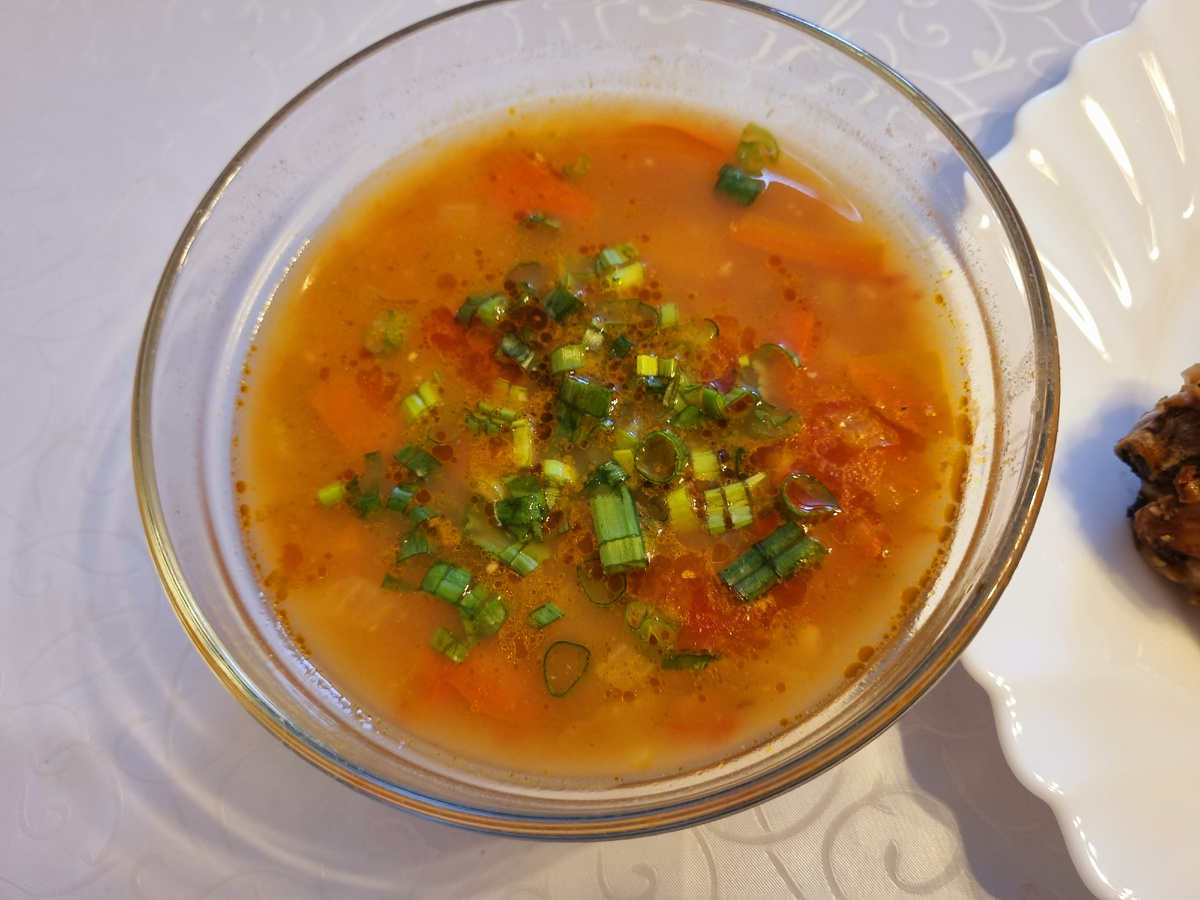 В выходные я подумала, что давно не варила каких-то новых супов. Пошла в интернет искать интересности. Нашла. Узбекский суп (ну по крайней мере везде так написано) - Машхурда. Как видно из названия маш там присутствует точно))) А у меня как раз непонимание было куда бы мне его пристроить. Вот так и сошлись звезды для маша и нового супа. Я вам расскажу сначала как я варила, а потом как надо правильно))) ну в это раз вот так) Итак, начинаем: Маш замачиваем заранее, я замочила утром, варила ближе к вечеру. Варим говяжий бульон, после того как сварится бульон процеживаем, мясо достаем и нарезаем на кусочки. Режем лук мелко, морковь соломкой, перец мелкой, короткой соломкой)) В толстостенной кастрюле "обжариваем" лук, добавляем морковь, чуть позже болгарский перец. "Обжарить" минут 5. Добавляем специи и замороженные помидоры (можно конечно и томатную пасту и свежие помидоры), тушим минут 5. Вливаем бульон, кладем приготовленное мясо и варим минут 10. Добавляем порезанный картофель, варим