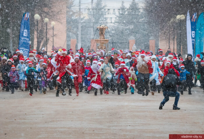 18 января во Владимире состоялся карнавальный забег Дедов Морозов и Снегурочек. В областной столице такое мероприятие проводят в 13-й раз. Так администрация города завершает череду новогодних и Рождественских мероприятий. . . В этом году местом забега выбрали Центральный парк культуры и отдыха. Старт был от главного входа в парк. Дистанцию в 300 метров участники преодолевали в одиночку и семьями, дружескими компаниями и с домашними питомцами. В прошлом году участники в костюмах должны были преодолеть дистанцию в 600 метров от Золотых ворот до Соборной площади. . . . В забеге могли принять участие все желающие любого возраста. Обязательное условие для участия – это наличие карнавального костюма. Самыми быстрыми в этом году стали Иван Сипин и Полина Бутакова. Самым опытным Дедом стал ЗМС по лыжным гонкам 85-летний Виктор Павлович Бубнов. В номинации «Самый юный Дед Мороз» первый приз достался Льву Гибнеру. В номинации «Самая юная Снегурочка» победила Есения Чирикова. В номинации «Самая с
