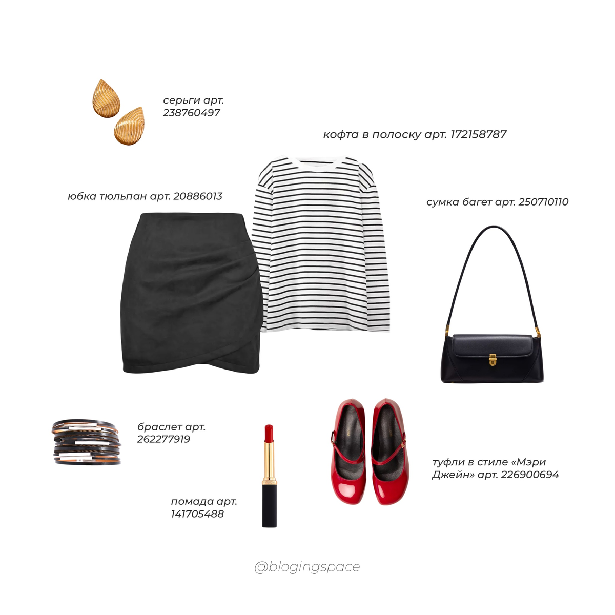Одни туфли красного цвета - три образа. Возможно ли не выглядеть глупо? Давайте посмотрим, какие стильные образы можно собрать из простых вещей. Красный цвет в одежде и обуви настолько спорный и эксцентричный, что мы боимся его, и чаще заменяем на коричневый или бордо. Однако и красный может быть благородным, не забывайте у него множество оттенков. В этом обзоре я составила три простых и одновременно стильных образа с красными туфлями в стиле "Мэри Джейн", которые вы сможете собрать на вб или других любимых магазинах. 1 образ Сдержанный повседневный образ подойдет для работы как в офисе, так и на прогулку с подругами. Красную помаду в дневное время можно заменить на помаду более сдержанного оттенка, однако красные туфли в данном случае станут изюминкой образа и не будут смотреться вульгарно. Объемные серьги "под золото" также в дневное время можно заменить на менее броские сережки, например серьги-гвоздики. Юбка-тюльпан прекрасно подчеркнет фигуру, а в сочетании с лонгсливом оверсайз