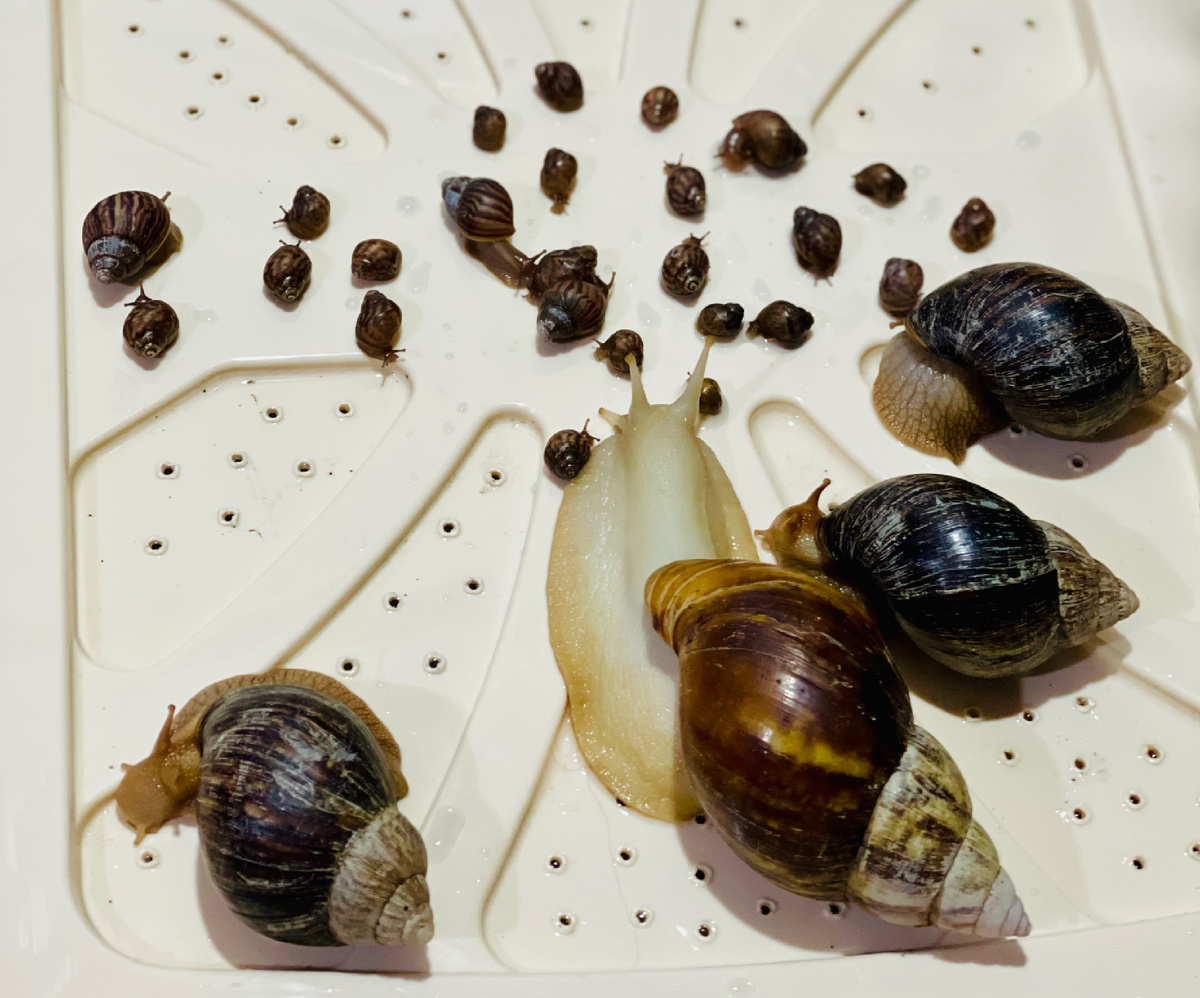Эти товарищи тоже уже светились на канале в роликах: Кто-то держит кур, коз, свиней, а в моём хозяйстве - улитки!🐌🐌🐌🐌 Появились они у нас вслед за Абрикосом. Их просил старший сын, но с тех пор, как улитки заехали в наш дом, он к ним ни разу и не заглянул. Стало быть точно моё хозяйство. Месяц на изучение улиточной темы, подготовка жилья, поиски живности. Покупали новых жильцов через Авито. Сначала появился Гэрри - Ахатина Ахатина (но это не точно). Его мы купили годовалым с битой и грязной раковиной у девочки лет десяти, наигралась. А вот Шустриков - Ахатина Ретикулята (это точно 😉), мы взяли из хороших условий. Совсем малыши, от роду неделя. Размером были с ноготок на мизинчике. Решили что жить улитосики будут на кокосовых ковриках, чтобы не создавать им условия для размножения. Но Шустрики нашу затею не поняли и регулярно приносят потомство. А я снабжаю всю округу ретикулятами 😄 Что было в 1 части: До следующего понедельника в рубрике «знакомство» Всем добра 🫶