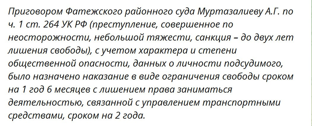 В Курской области вынесли толерантный приговор дагестанцу за ДТП с нанесением тяжелого вреда беременной женщины