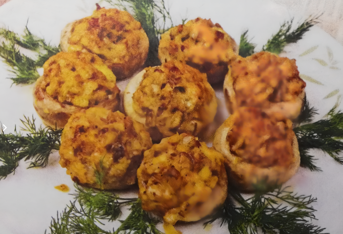 Ингредиенты: - 500 г крупных шампиньонов - 1 маленькая луковица - 1 морковь - 1 долька лимона - 30 г сыра - 1 ст. л. сметаны - 20 г сливочного масла Приготовление: Отделите у грибов ножки от шляпок, а затем мелко порежьте ножки. Шляпки варите в подсоленной воде с добавлением лимонного ломтика, чтобы сохранить их цвет. Мелко нарезанный лук обжарьте на сливочном масле, добавьте тертую морковь и измельчённые грибные ножки, посолив и поперчив по вкусу. После охлаждения массы введите натёртый сыр и сметану, тщательно перемешайте. Получившимся фаршем начините отваренные шляпки грибов. Полейте сверху сметаной и слегка посыпьте сыром. Разложите грибы на противне. Запекайте в духовке до появления золотистой корочки.