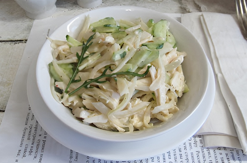 Редька - чуть ли не самый полезный овощ в холода из-за своей высокой антиоксидантной активности и противомикробных свойств. Поэтому салат, предлагаемый Ириной Защипиной, будет очень в тему - вкусно насытит. А заодно уменьшит колонии патогенных микроорганизмов и укрепит ваш иммунитет. Ингредиенты: 400 г редьки (подойдет любой сорт), 200 г огурцов, 3 яйца, 30 г орехов, 3 ст. л. майонеза, 1 ст. л. горчицы, зеленый лук, соль, перец по вкусу. Редьку чистим и трём на крупной тёрке, присаливаем, перемешиваем и оставляем на 10 минут пустить сок. Затем хорошенько отжимаем. Если будете использовать черную редьку или зеленую, то можно оставить их подольше и за это время еще разочек перемешать. Свежий огурчик режем соломкой. Яйца сначала разрезаем вдоль на половинки, а потом каждую половинку нарезаем поперек до состояния полосок. Зеленый лук мелко рубим ножом. Орехи в этом рецепте - неожиданный ингредиент, который не часто сочетают с редькой. А зря, потому что подходит он к этому продукту идеально