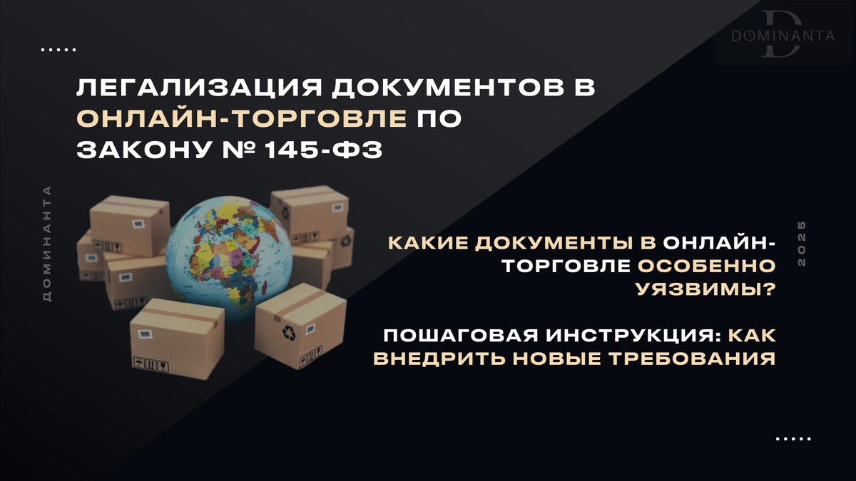 Новые правила легализации документов в онлайн-торговле: пошаговое руководство от Оксаны Комаровой «Представьте: вы на грани заключения крупной международной сделки. Всё согласовано, клиенты ждут товар, а партнёр в ответ на ваш электронный договор внезапно спрашивает: „А где печати? Где заверенный оригинал?“ Вот тут и начинаются приключения с легализацией документов. Но не волнуйтесь — всё решаемо!» Сегодня разбираемся, как Федеральный закон от 22 июня 2024 года № 145-ФЗ (вступающий в силу с 1 января 2025 года) меняет жизнь предпринимателей в сфере онлайн-торговли. Обсудим, какие документы потребуют легализации, какие новые требования нужно учесть и как это сделать без лишней головной боли. Закон № 145-ФЗ вводит новые правила легализации российских и иностранных официальных документов. Ключевые моменты: Для онлайн-торговли это значит, что контракты с зарубежными поставщиками и покупателями, сертификаты происхождения товаров, таможенные документы и другие бумаги придётся оформлять по нов