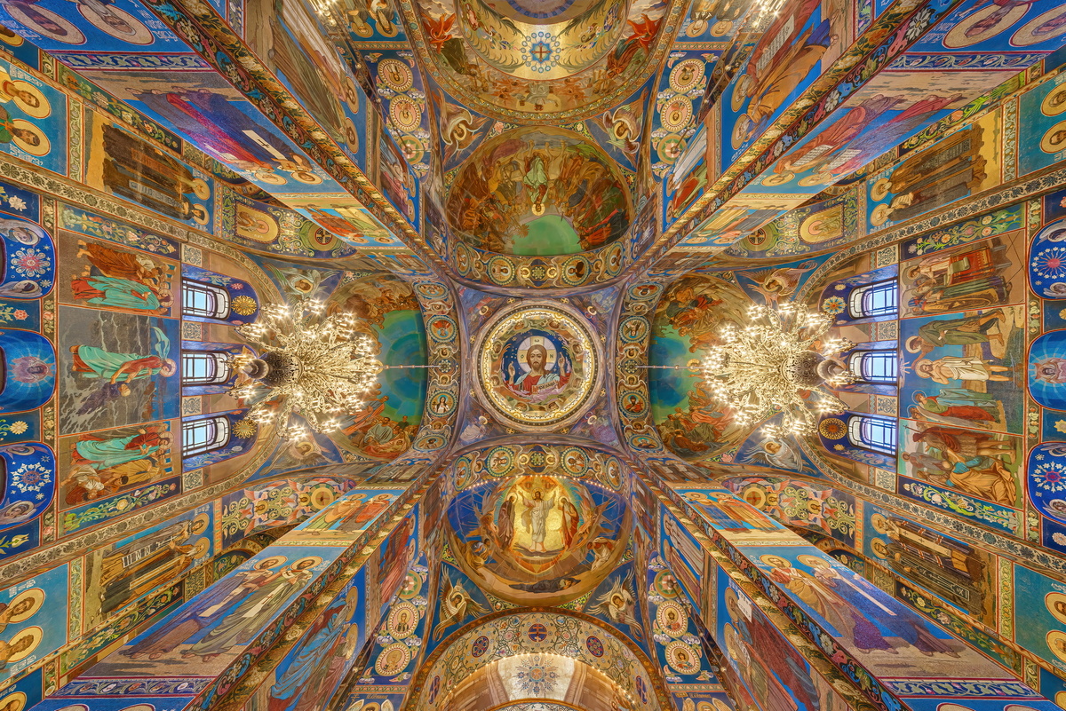 Роясь в старых архивах, обнаружил ещё одну съёмку от 2015 года, которую решил заново пересобрать и переделать ретушь, чтоб придать фото более менее удобоваримый вид, так-как снимал на дешёвый фотоаппарат и простенький широкоугольный объектив. Коммерческих съёмок тогда было очень мало, доходы не позволяли даже брать в аренду что-то приличное, поэтому снимал на то, что было. В сети видел кучу фото, но они все сняты туристами и ввиду того, что в соборе для съёмки с рук недостаточно света, все эти фото убогого качества, так-как, чтоб снять фото резкими и с низким уровнем шумов, нужен штатив, а съёмка на штатив запрещена! Именно эти факторы и толкали меня на то, чтоб организовать именно профессиональную съёмку с использованием штатива, длинных выдержек, метода мультиэкспозиции (когда одна сцена снимается в 3-5 кадров, которые потом сшиваются в один результатирующий кадр) и низких значений чувствительности (ISO). Узнав, что мне предстоит работать на таком уникальном объекте, один из коллег даже напросился в ассистенты, чем я и воспользовался, чтоб получить несколько кадров работы самого автора. Решил их тоже показать, чтоб было понимание, как снимаются вертикальные ракурсы! Все снятые мной дворцы и храмы, где туристы ходят ногами, я в буквальном смысле прополз на пузе и коленях