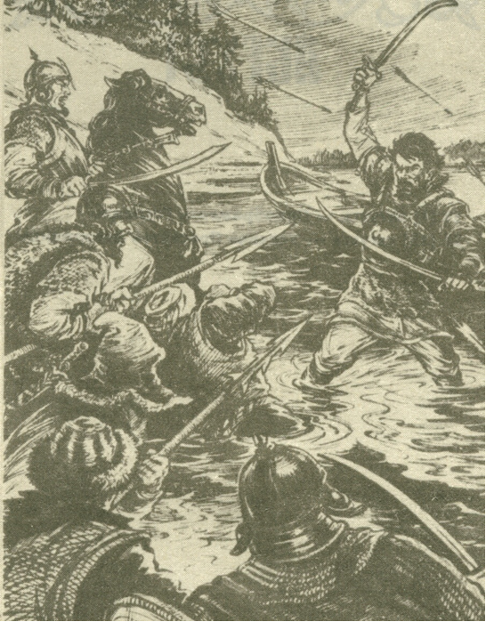 Веселую грянули песню казаки, когда по знакомому пути, по рекам сибирским поплыли назад к Каменному поясу. Весла бодро ходили в руках, сознание великого дела, которое они совершили, окрыляло их, и летели острогрудые челны казачьи по холодным волнам широких рек.