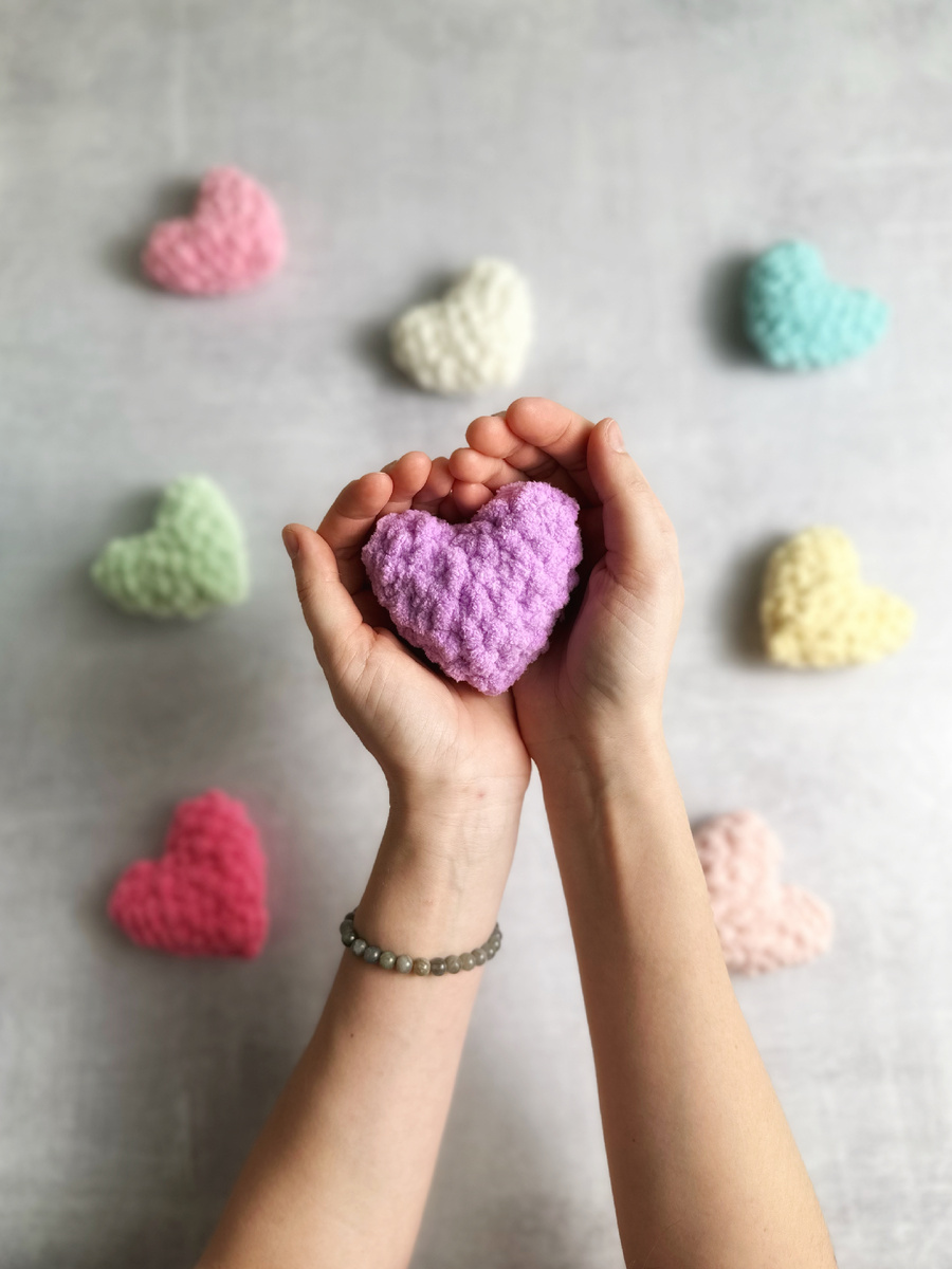 Практически у каждой вязальщицы есть большой запас остатков пряжи, который и выбросить жалко, вдруг понадобиться?! Но и в то же время лежит мертвым грузом. Предлагаю вам потратить своим остатки на такие чудесные сердечки! Вяжется всего за 5-6 минут минут, расход 106 петель и немного наполнителя. Связать их можно из любой пряжи с готовыми петлями (кроме Alize Puffy More) Такие сердечки можно использовать как декор, а так же можно добавлять к заказу в виде подарочка. Покупателю будет приятно 🥰