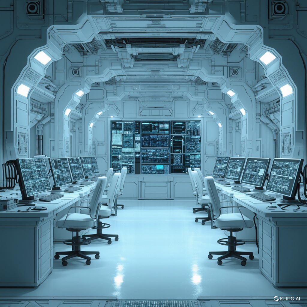 В тишине лаборатории, нарушаемой лишь слабым гудением серверов, Лиза стоит перед консолью, ее лицо светится тусклым светом экранов. Весь ее вид говорит о том, что она давно на грани изнеможения. Она смотрит на поток данных, но мысли ее утомлены цифрами и кодами. Звук голоса, который неожиданно раздается через динамики, отвлекает ее от размышлений.