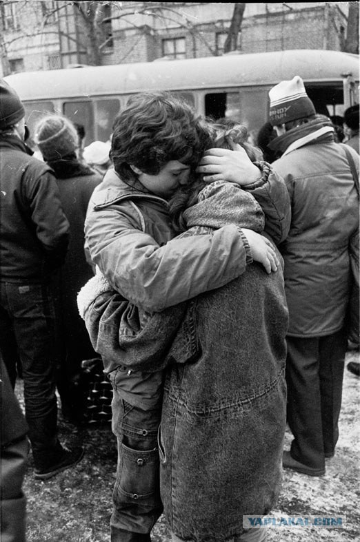 И тут за забором начинается что-то. Все провожающие, мамы, папы, братья, сестры, бабки, парни, все кто гулял на проводах начинают неистово орать, свистеть, виснуть на заборе.