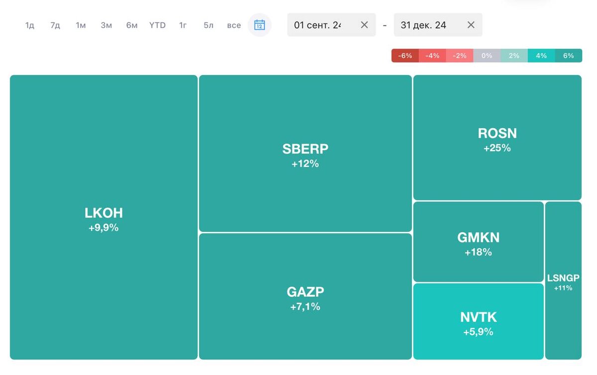 Чуть задержал пост, очень уж не хотелось работать в праздники. Мои вам соряны. Это пост — отчетный, чтобы можно было потом быстро сделать ретроспективу по годам. Хочу подвести краткие итоги всего 2024 по моему публичному портфелю. — Начал формировать публичный портфель я в конце сентября 2024. Вот стартовый пост движухи. Так что по сути, здесь итоги 3,5 месяцев инвестиций. — На конец года в портфеле только дивидендные акции, всего 7 компаний. — Под конец года на новостях о ставке все раллировало, поэтому закончили год с ростом. Доли компаний и их рост — на картинке. Что в цифрах? — Инвестировано 160к за 4 месяца, примерно по 40к в месяц. — В декабре получены первые дивиденды, 3,5к, 2,2% к инвестированному на тот момент. Это весь дивидендный доход за год. Ну, надо же с чего-то начинать. — Рыночная стоимость портфеля на конец года — 179к (+11,9% к инвестированному). Внутри примерно 3,5к дивидендов (+2,2%) и 15,5к роста бумаг (+9,7%). — Доходность. Это на самом деле целый вопрос: инвестиц