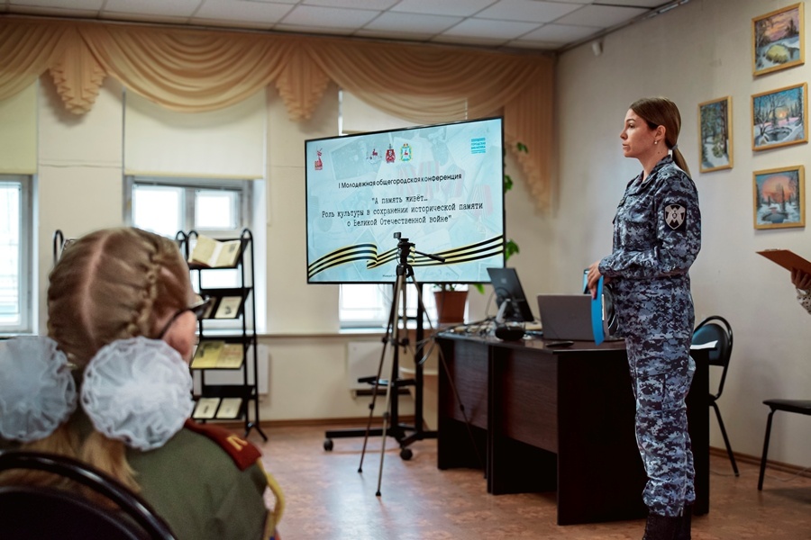 20 января в центральной городской библиотеке имени В.И. Ленина психолог вневедомственной охраны лейтенант полиции Алена Яшкова приняла участие в молодежной общегородской конференции «А память живет: роль культуры в сохранении исторической памяти о Великой Отечественной войне».