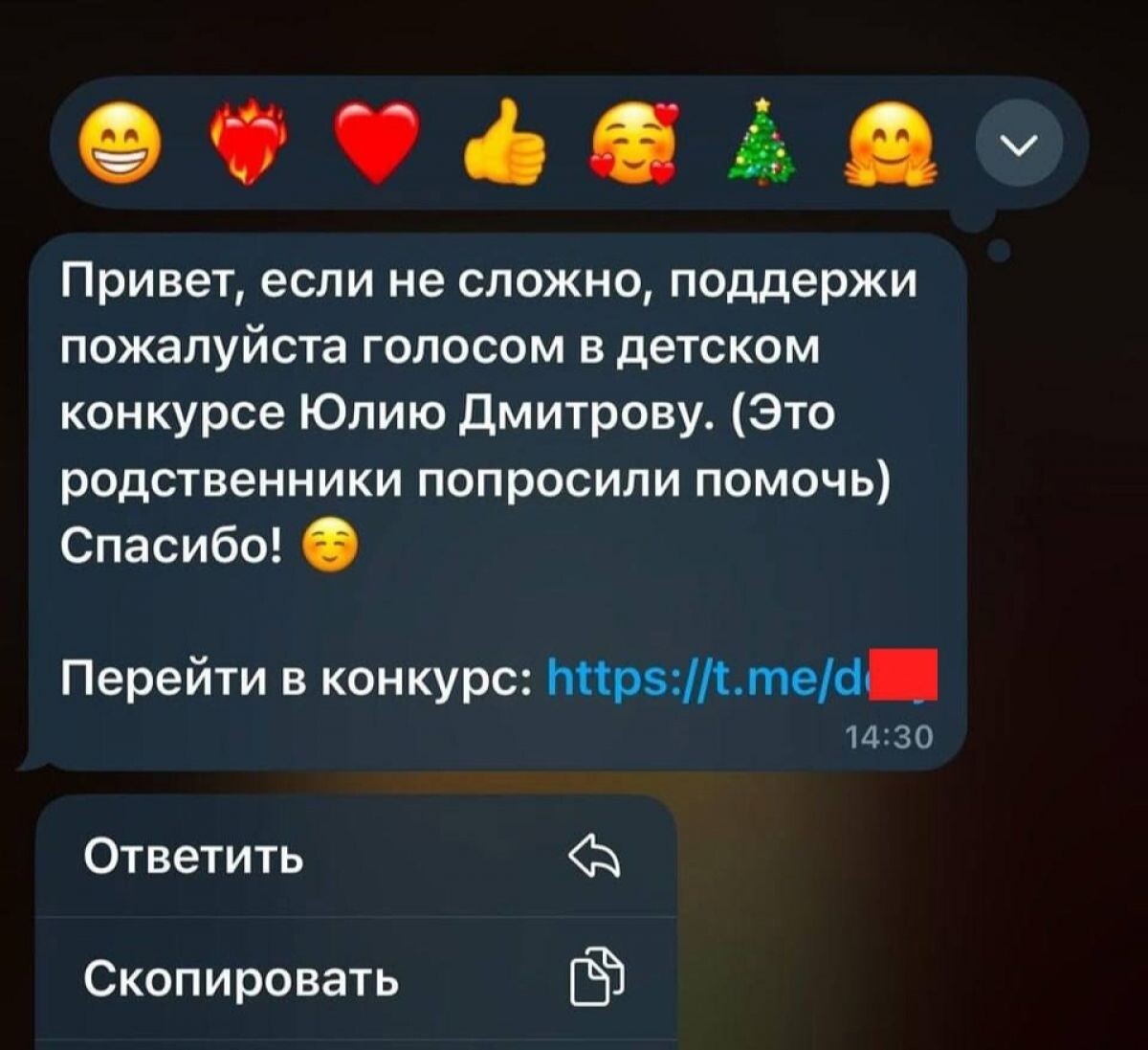 «Привет, поддержи Татьяну Самсонову, если не трудно», – так зачастую начинаются теперь сообщения от мошенников.т Схема работает следующим образом: пользователь получает сообщение от контакта, который долгое время не был в сети. В сообщении содержится просьба проголосовать за кого-либо, например, «поддержать Наталью Юрьевну в детском конкурсе». Прилагаемая ссылка якобы ведет на страницу голосования, но на самом деле это фишинговый ресурс. При переходе по ссылке жертва теряет контроль над своим аккаунтом.