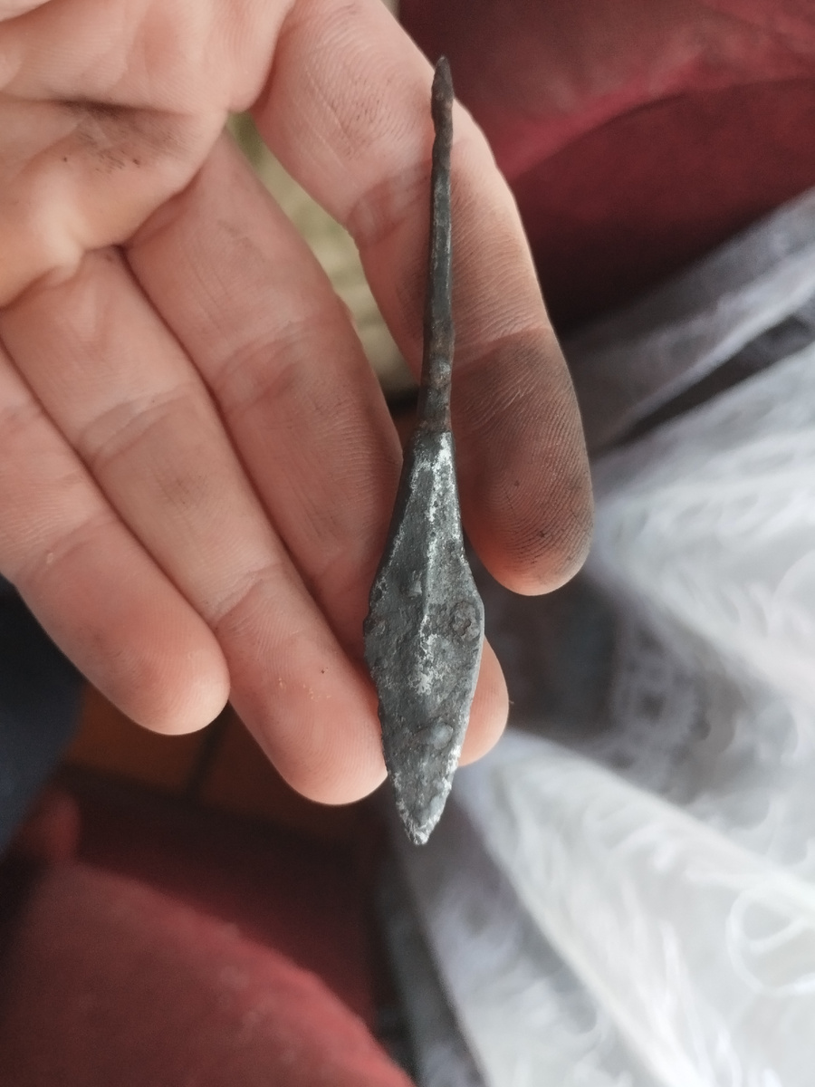 В общем решили сегодня почистить наконечник найденный когда то в земле, электрохимическим способом ! Для этого мне понадобилось: 1. Сам наконечник(железный) 2. Пластиковая посуда 3. Кусок нержавеющей стали ( я взял столовую ложку) 4. Блок питания 5. Сода(можно так же взять соль) И так, последовательность у меня была такая : В пластиковую посуду налил воды, взял кипячёную, не из под крана. Затем насыпал в нее соду 2-3 столовые ложки. После чего взял блок питания ( у меня на 5А) и подсоединил его, один провод(+) к наконечнику, а второй (-) к нержавеющей ложке. Далее наконечник и ложку поместил в посуду с водой и содой таким образом, что бы они не касались друг друга, подключил блок к сети и вуаля, процесс очистки пошёл. Плюсовой провод который подсоединён к очищаемому предмету, начинает пузырить, значит все сделано правильно. Время на очистку от ржавчины и налета ушло где-то минут 30-40. После чего отсоединил провода и промыл наконечник под краном. Не знаю, все правильно ли я делал, м