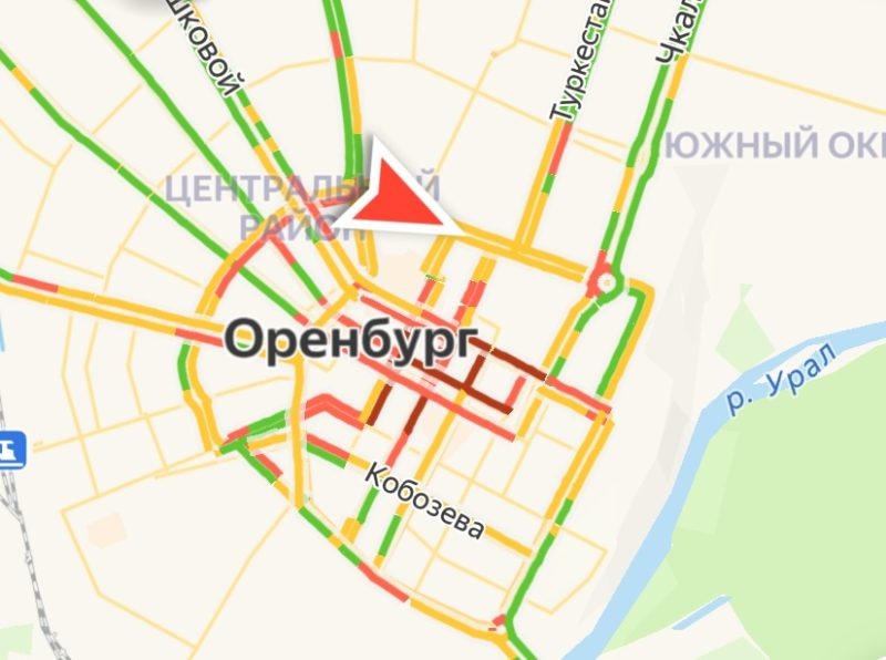 Движение затруднено на улице Монтажников, Салмвшской, Транспортной, проезде Автоматики. При этом на мостах через Урал, а также на Нежинском шоссе существенных осложнений не наблюдается.