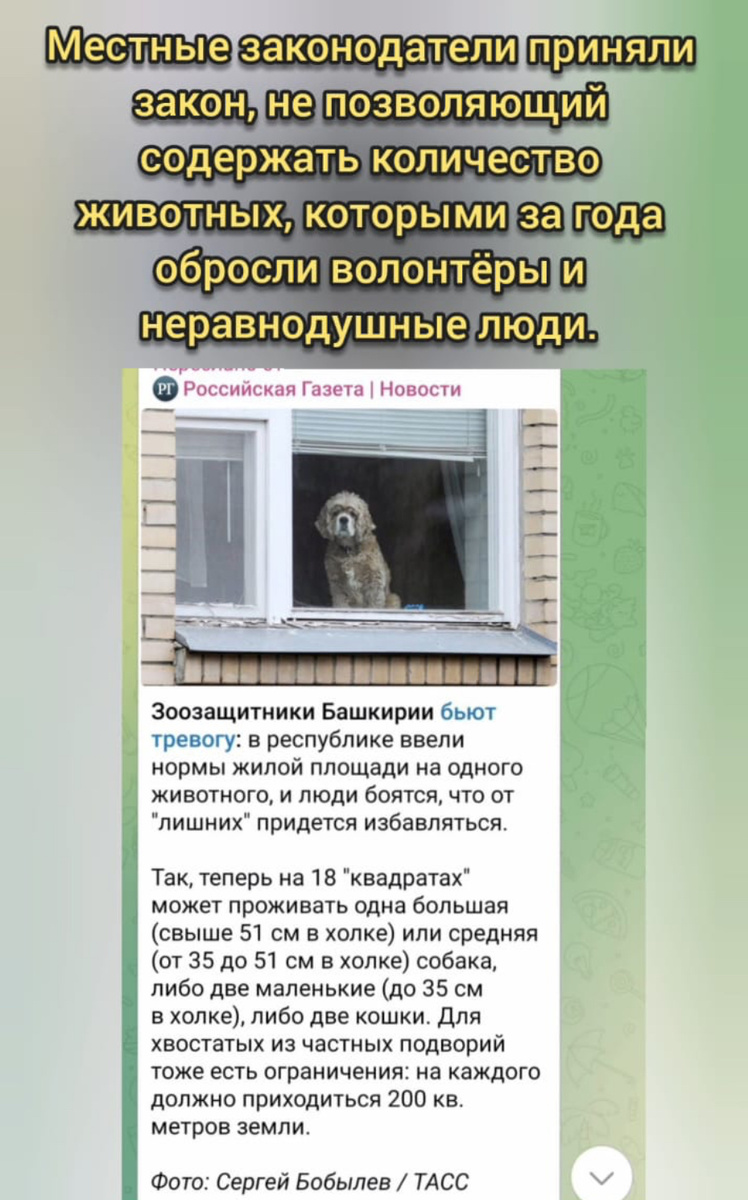 Помогите спастись, помогите СПАСТИ! Сбор на Жизнь! Россия!🙏🏼 Это Башкирия..Местные законодатели приняли закон, не позволяющий содержать количество животных, которыми за года обросли волонтёры и неравнодушные люди. Эти люди не смогли пройти мимо боли, страдания, слёз...не смогли отвернуться и бросить эти молящие о помощи глаза беззащитных Собак и Кошек!!!! Зоозащитники бьют тревогу!! Ведь как всегда, пострадают только животные 😭 Мы в отчаянии, на нашем кураторстве более 30 животных, есть инвалиды, кошки. Друзья, нам очень необходимо теперь выселять собак с домашних передержек , так сказать с диванов, на цепь в будки 😭😭😭 Инвалидам, суставникам и кошкам нужно приобрести теплые вагончики , хоть б/у🙏🙏🙏 Времена сложные, к сожалению добро не побеждает, но вместе мы справимся 🙏😔 Примерная сумма на две б/у бытовки + транспортировка 200 000 р. Будки + перевозка 50 000р. ⚡ К Сбору на СПАСИТЕЛЬНУЮ ЗАКУПКУ И ПЕРЕЕЗД 250.000 РУБ⚡ 🆘 Любая посильная сумма -- это огромный вк