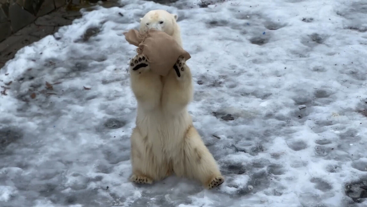 В вольере белого медведя Ленинградского зоопарка Хаарчааны разворачивается захватывающее сражение. Она столкнулась с шаром, покрытым несколькими слоями мешковины. Хаарчаана начинает атаку, крепко сжимая челюсти на ткани. Шар слегка раскачивается, но держится стойко. Медведица использует свои мощные лапы, чтобы атаковать шар. Она наносит сокрушительный удар, и первая оболочка слетает. Шар пытается убежать, но куда ему спрятаться от такой грозной хищницы? Хаарчаана быстро загоняет шар в угол, и «жертва» сдается. В конце сражения Хаарчаана гордо обнюхивает свою побежденную добычу, показывая всем, кто здесь главный. Ранее сообщалось, что Ленинградский зоопарк показал выдру за трапезой.