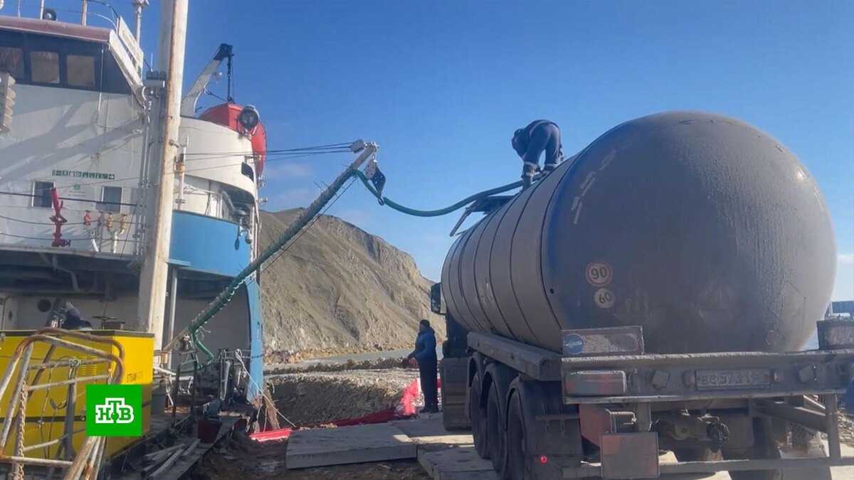 К откачке мазута специалисты приступили накануне. Для этого построили дорогу к судну и техническое сооружение вокруг него. Всего предстоит откачать почти полторы тысячи тонн мазута. Для этого задействовали восемь герметичных битумовозов, которые оборудованы системами подогрева. В среднем на заполнение одной машины потребуется от одного до трех часов.