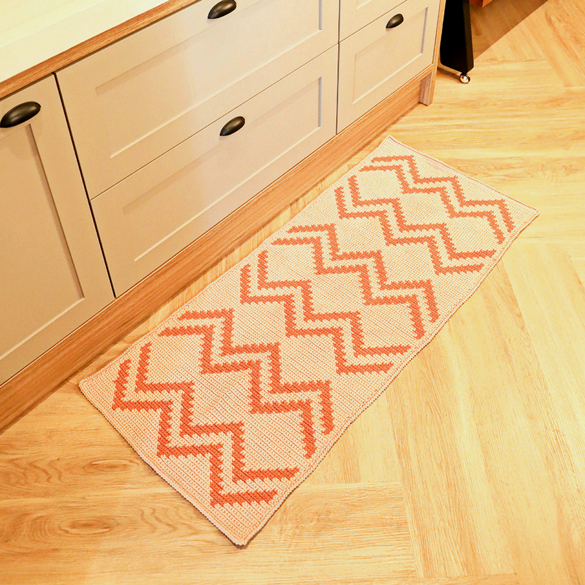 Судя по откликам на последние публикации, вы немножко подустали от плечевых изделий. Нужно порадовать чем-нибудь новеньким не писать недельку-другую. Как насчёт интерьерных вещей? Тем более, что я давно не делала подборок с крючкотворными изделиями, спицы полностью меня поглотили! Для дома можно столько всего красивого и полезного связать: и салфетки, и скатерти, и пледы, и дорожки, и подушки. Выбирай — не хочу! Сегодня у нас весёлое ассорти из интерьерных моделей крючком. Сохраняйте понравившиеся варианты в свою копилку! Для вязания нам потребуется 6 мотков бежевой и 2 мотка терракотовой пряжи: 100% хлопок; 115 м/100 г. Крючок № 3,5-4. Размеры: 130 х 55 см. Коврик вяжется обычными столбиками без накида. Для вязания нам понадобится по 3 мотка белой и оранжевой пряжи: 100% хлопок; 115 м/100 г. Крючок № 3,5-4. Размеры: 132 х 53 см. Скатерть вяжется из мотивов. Размер одного мотива около 10 см в диаметре. Всего необходимо связать 20 оранжевых и 20 белых мотивов. Соединять можно как сра