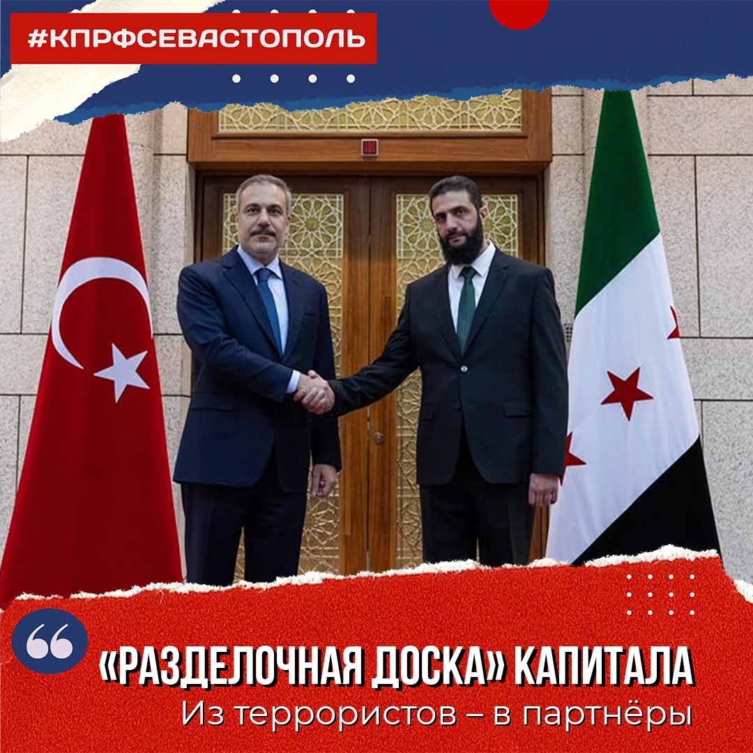 Вчерашние головорезы исполняют волю зарубежных сил, приведших их к власти. Первую скрипку играют Турция и Катар, много лет опекавшие боевиков. Спустя пять дней после захвата Дамаска туда прибыли главы их разведывательных ведомств. Вскоре Сирию посетил глава турецкого МИД Хакан Фидан. «Самый сложный и мрачный период для вашей страны позади, — заявил он. — Турецкий народ, турецкое государство и наш президент Эрдоган всегда будут рядом с вами». До наступления нового года в Дамаске побывали министр энергетики и природных ресурсов Алпарслан Байрактар и другие турецкие чиновники.