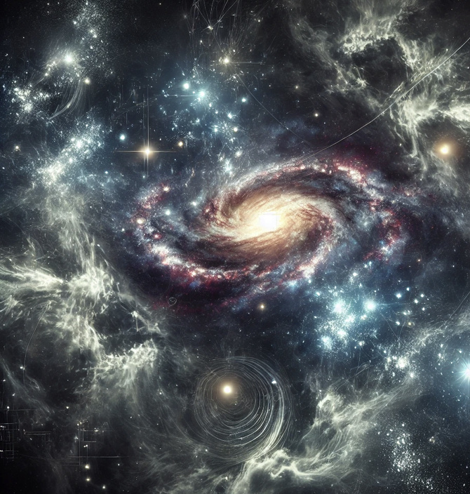 Нашу Вселенную пронизывает загадочная субстанция — тёмная материя и энергия. Эти явления, о которых известно крайне мало, составляют большую часть космоса. Учёные уже несколько десятилетий пытаются понять их природу, но загадка остаётся нерешённой. Так что же такое тёмная материя и энергия, и почему они так важны для понимания устройства Вселенной? Тёмная материя: невидимый скелет Вселенной Астрономы обнаружили, что видимая материя — звёзды, планеты, галактики — составляет лишь 5% массы и энергии во Вселенной. Около 27% приходится на загадочную тёмную материю. Она невидима, не испускает и не поглощает свет, но её присутствие можно «увидеть» через гравитационные эффекты. Например, скорость вращения звёзд на краях галактик намного выше, чем должна быть, если учитывать только видимую массу. Это можно объяснить только существованием невидимого гравитационного «каркаса», удерживающего звёзды вместе. Что мы знаем о тёмной материи? • Она взаимодействует с обычной материей только через