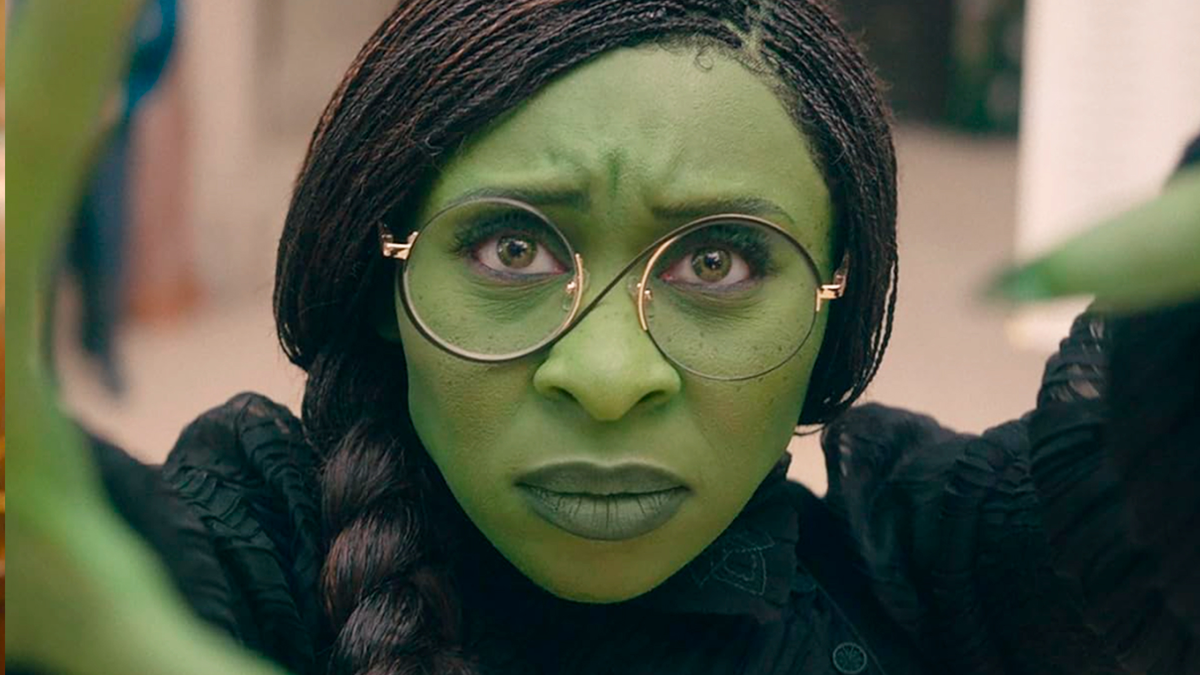 Итак, перед нами жизнь и становление Эльфабы Тропп, ни на кого не похожей и никем не любимой зеленой девочки, будущей ведьмы Запада. (Эльфаба — анаграмма из первых букв имени и фамилии Л. Ф. Баума.) Большую часть фильма ее играет певица Синтия Эриво. Когда тридцатисемилетняя дива пытается изображать юную первокурсницу, чувствуешь себя гостем провинциального ТЮЗа, где всем красным шапочкам впору играть бабушек. Эльфаба поистине зелена и крайне непривлекательна. Трудно сказать, что тому виной — возраст, зеленый цвет, не идущий темнокожей актрисе, или посредственный вокал, которым истязают зрителя больше двух часов. В общем, даже доброта и стремление помочь всем и каждому не сильно пробуждает сочувствие, поскольку игра Эриво плоская. Неестественна и соперница (она же потом подруга, а потом снова соперница) Эльфабы — блондинка Галинда (позже Глинда), роль которой досталась Ариане Гранде. Девушки встречаются в институте Шиз, куда поступает прикованная к креслу-каталке сестра Эльфабы Нессароза (Марисса Боде). Единственный по-настоящему интересный музыкальный номер Гранде — где она в розовом пеньюаре вертится на люстре и ездит на пятой точке по полу. Нелепые движения девушки и стеб режиссера над замашками белокурых дев (троллинг или цитация роли Риз Уизерспун из «Блондинки в законе»?), достигающий в этой сцене апогея, немного отвлекает от занудного пения.