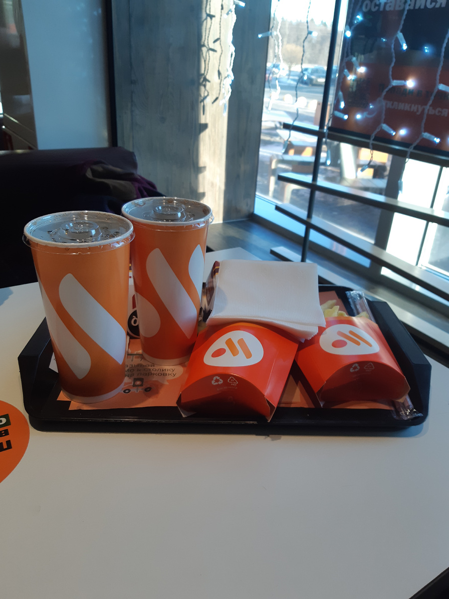 Всем доброго времени суток. Ну, что, потащила я сегодня мужа в русский Макдональдс. Захотелось предаться ностальгии в свой день рождения. Раньше с дочкой любили забегать туда. Набор всегда брали стандартный - картошка фри маленькая, бигмак, кола, мороженое. Иногда - пирожок с вишней. Ходили редко, не чаще раз в месяц.Для настроения. Всё нас устраивало. Сегодня ребёнок далеко, завтра экзамен сдаёт.Схожу с мужем, пока оба свободны. Пришли. Времени было около 12 часов. Народу немного, нашли место свободное. Муж сел ждать, сказав, что он будет. Я пошла на кассу. На кассе - женщина, лет тридцати, южной национальности. Начала я с мороженого. -"Мороженого нет, аппарат сломался и вообще не известно, когда починят, нескоро, скорее всего"- с улыбкой было сообщено мне. Я немного расстроилась, ну, да ладно, думаю, возьмём потом в другом месте. Начала делать заказ. Выяснилось, что сотрудница не очень хорошо владеет русским языком, я не понимала, что она имеет ввиду, а она - меня. Народа, правд