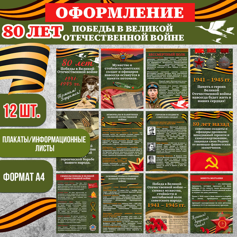 80 лет Победы в Великой Отечественной войне. Оформление (12 плакатов/информационных листов А4)