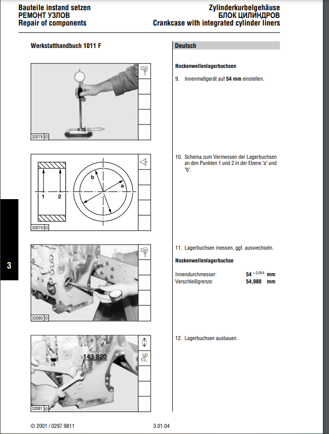 Ремонт и диагностика блока цилиндров двигателя моделей F 2 3 4 L 1011 / BF 2 3 4 L 1011 / F 2 3 4 M 1011 / BF 2 3 4 M 1011. Используемых в технике Растворонасос PUTZMEISTER 740; Дорожный каток HAMM HD 75; bomag bw 120; DYNAPAC 102; Дизельный компрессор Atlas Copco xas 97 / 47; Асфальтоукладчик ABG titan .