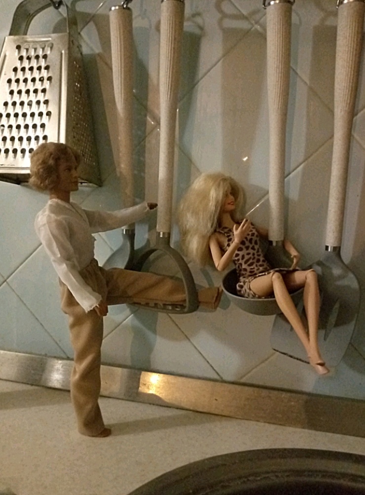Немножко побаловалась с куклами во время ночного похода на кухню🤭 Анита оторвалась по полной! Давно уже я не видела её такой пышущей энергией. Наверно, празднует приобретение подвижного тела😁 ...И вспомнилось, как в детстве мы со старшей сестрёнкой увлеклись игрой в индейцев. Куклы у нас были всякие и разные – и барби, и "малявки" (до сих пор не знаю, что это были за куклы, как аналоговые барби, только раза в три меньше. Сейчас таких уже больше не выпускают). И пупсы пластмассовые, и куклы шитые, и куклы вязаные, и бумажные... Но даже это множество не могло воплотить всех наших идей. Захотелось нам играть в индейцев, а никто из уже имеющихся кукол не был похож на индейцев. Поэтому мы слепили их из смеси красного и коричневого пластилина с обыкновенной замазкой. Ростом они были около восьми сантиметров. Замечательно гибкие. Да отваливающиеся части тела от перегибов легко было пришпандорить обратно. Но было одно но: после вылепки их нужно было на некоторо