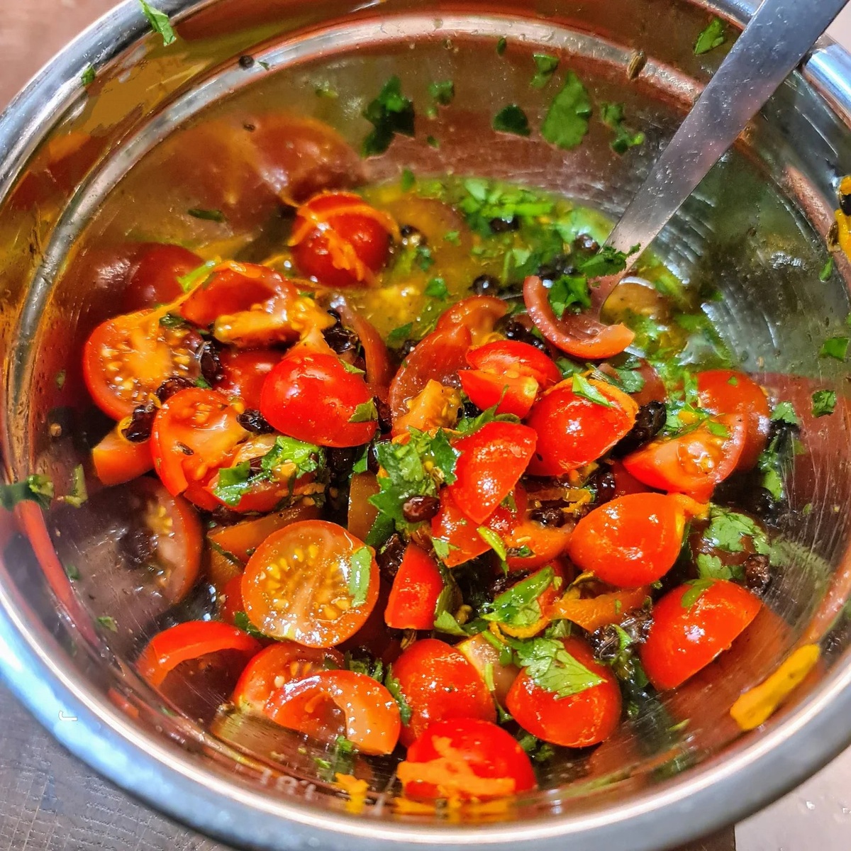 Для двух человек необходимы: 2 Разрезанных на четвертинки помидора черри Органический апельсиновый сок и пюре Органический сок лайма и растирание Органический лайм в дольках для украшения Кленовый сироп Барбарис или коринфы, маринованные в лимонном соке Семена фенхеля, обжаренные и измельченные Оливковое масло Растертый в масле чеснок Листья кинзы нарезать тонкой соломкой Соль и перец Приготовьте сальсу из апельсинового сока, цедры апельсина, сока лайма, цедры лайма, кленового сиропа, барбариса, семян фенхеля, масла, небольшого количества соли и свежемолотого перца Рыбу почистить, сбрызнуть лимонным соком, посолить и выложить на противень или в форму для запекания. Разомните сливочное масло с чесноком и залейте им рыбу. Выпекать в духовке около 18-20 минут, время от времени поливая сливочным маслом. В завершение добавьте сальсу. Сверху выложите нарезанную кинзу и ломтики лайма