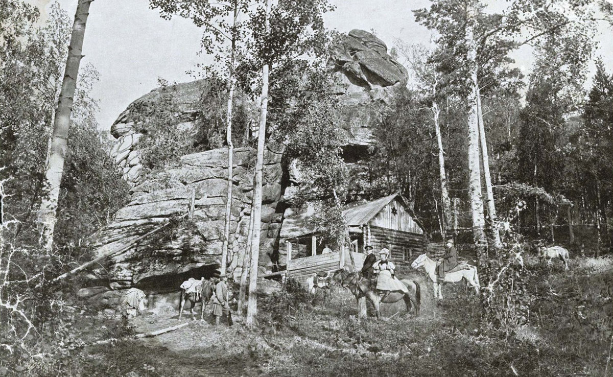 Заповедник «Красноярские Столбы» Примерно 400-450 миллионов лет назад в этих местах происходили мощные выбросы магмы, которая застывала на поверхности. В результате тектонических процессов, а также под воздействием воды, солнца и ветра большая часть скальных образований стала разрушаться. Так и возникли горы причудливых форм из сиенита — разновидности магматической породы. Долгое время скалы оставались terra incognita для учёных. Впервые Красноярские Столбы были упомянуты в 1823 году в заметках исследователя Прохора Селезнёва. Он писал, что «залезти на сии скалы никто не сможет и какие они неизвестно». А в 1842 году первое подробное описание этой интересной местности составил геолог и исследователь Саянских и Алтайских гор П. А. Чихачев. 1823 год. Рудознатцы • Конец XIX - начало XX вв. Красноярские Столбы Через некоторое время вслед за учёными сюда потянулись и местные жители. Именно здесь зародилось движение столбизм — покорение скал без использования страховки, только благодаря собст