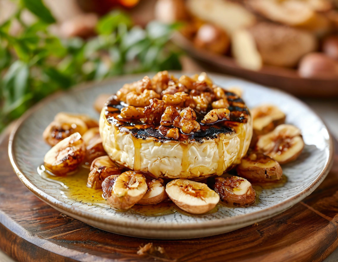 Запечённый на гриле камамбер с орехами и мёдом: уют в каждой ложке