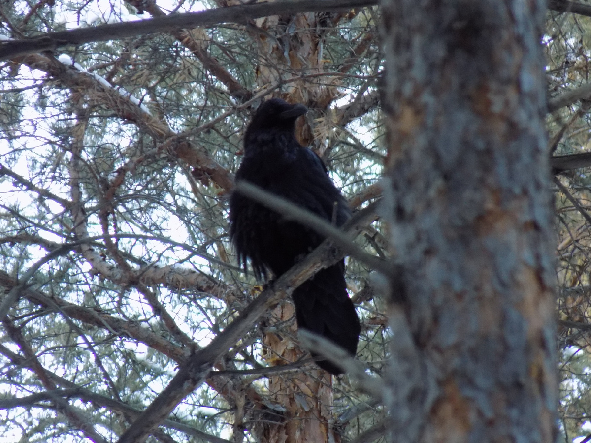 Чёрный ворон не вился ни над чьей головой, а «клюкал» на весь лес, когда его заметил заместитель начальника Минусинской лесопожарной станции Максим Дрюков. Запечатлеть эту серьёзную птицу удалось в Минусинске, за горой Лысуха. Ворон - самый крупный представитель семейства врановых. И это не «муж» вороны! В отличие от ворОн, вОроны «разговаривают» мягче. Их «кро-кру» звучит глуше и менее резко. Получается более глубокий гортанный звук. Ворон намного крупнее и мощнее вороны. У него более массивный клюв с большим изгибом на конце. Вокруг головы больше пушистых перьев, которые на горле выступают веером. Хвост у вОрона клиновидный, у вороны — прямоугольный. Ворон парит над землей, а ворона хлопает крыльями. Вороны ходят по земле, а вОроны сочетают ходьбу и прыжки. Ворон не любит шум и суету, селится поодиночке или парами в лесах или горах. Санитар леса, он питается всем, что может поймать или обнаружить.