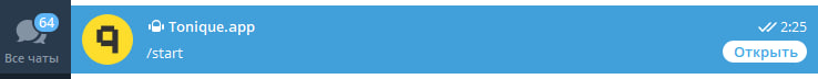 К такому проекту относится, например, приложение Tonique в мессенджере телеграмм. В чём суть? Приложение является неким игровым центром, где в формате мини-игр набирается пул пользователей для будущей площадки по торговле NFT. (Что такое NFT можете глянуть в моей статье). Играя, пользователи получают очки, которые в последующем трансформируются в токен, в свою очередь который уже будет использоваться на данном маркетплейсе. Но это в отдаленной перспективе. Но уже сейчас можно получать кэшбек 33.3% с затрат привлеченных пользователей. Как это сделать? Сейчас расскажу: Качаем телеграмм в телефон или на ПК, если его еще нет, и переходим по этой ссылке на приложение Tonique. Ищем его в списке чатов: Далее жмем на поле с названием приложения и попадаем в чат с ботом. Там нам нужно нажать на название Tonique.app: Теперь жмём н
