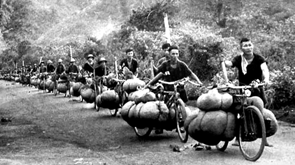 Но на этой фотографии мы видим, что велосипедистов как-то слишком много. На самом деле, эта колонна велосипедистов везёт материальную помощь армии Вьетминя, которая ведёт борьбу с французскими колонистами в долине Дьенбьенфу. Дело в том, что у сторонников Хо Ши Мина не хватало грузовиков и гужевого транспорта. В это самое время, французы окопались в долине Дьенбьенфу и армия Вьетминя выполняла манёвры по блокированию противника в долине. Вьетнамцы массово бросались на помощь своим военным и для снабжения армии, собрали всё что может ехать и везти хоть какой-нибудь груз. Поскольку у бедных вьетнамцев велосипед был самым популярным транспортом, то они приспособили железных осликов под перевозки полезного груза. В этом сражении, французы потерпели сокрушительное поражение, а по итогам всей войны, Вьетнам вырвал своё право называться суверенным государством.