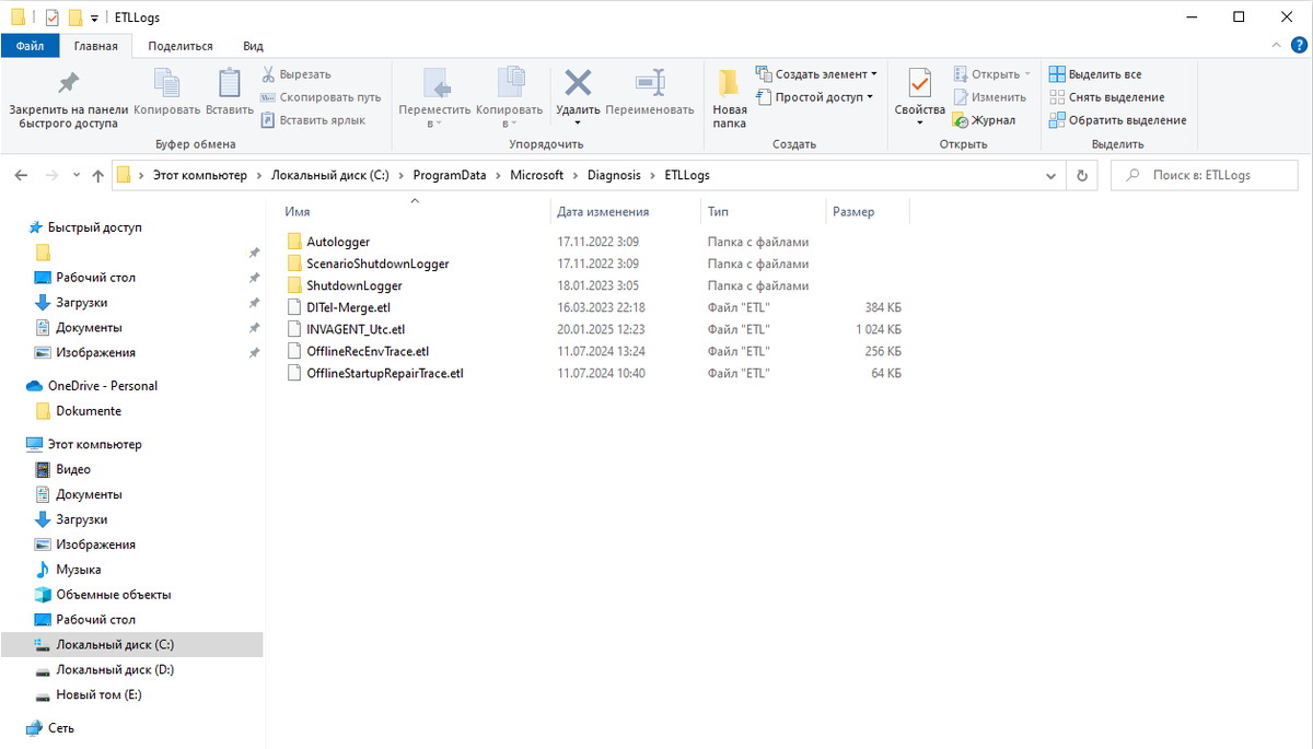 После выполнения команды все файлы с расширением .etl в папке C:\ProgramData\Microsoft\Diagnosis\ETLLogs б
