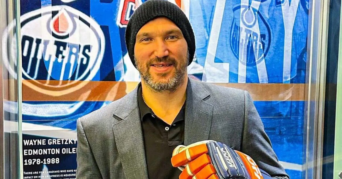 Овечкин побывал в Зале славы «Эдмонтона». Он примерил краги Гретцки, подержал его клюшку и сделал фото со свитером