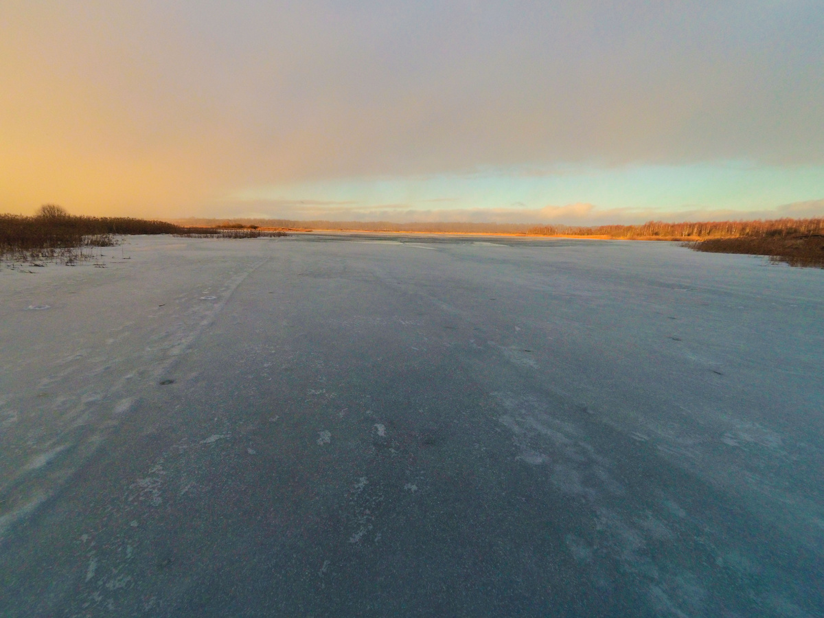 Дорога к озеру накатана, хотя на льду никого. Впрочем, есть старые лунки, и немало. Возможно, по первому льду и был "ход". Решаем остановиться в прибрежной и знакомой зоне. Озеро велико, есть и интересные места, как, например, "затопленный лес", но всё это неблизко, а прочность льда на акватории под вопросом, ещё и сильный ветер, от которого здесь хоть как-то защищает камыш. Ищем окуня, плотву, краснопёрку. Этой рыбы хватает, летом она клюёт почём зря, забивая поклёвки редкого карася. Должна клевать, как мы думаем, и зимой. Ловить же карася целенаправленно сейчас почти бессмысленно, здесь в силе и сниженное количество рыбы, и "глухозимье. Поклёвки, конечно, возможны, но перспектива просидеть день в ожидании никого из нас не радует. К тому же карась силён, велик (по сравнению с той же плотвой) и снасть на него нужна совершенно иная. В общем, ищем "спортивную" рыбу.