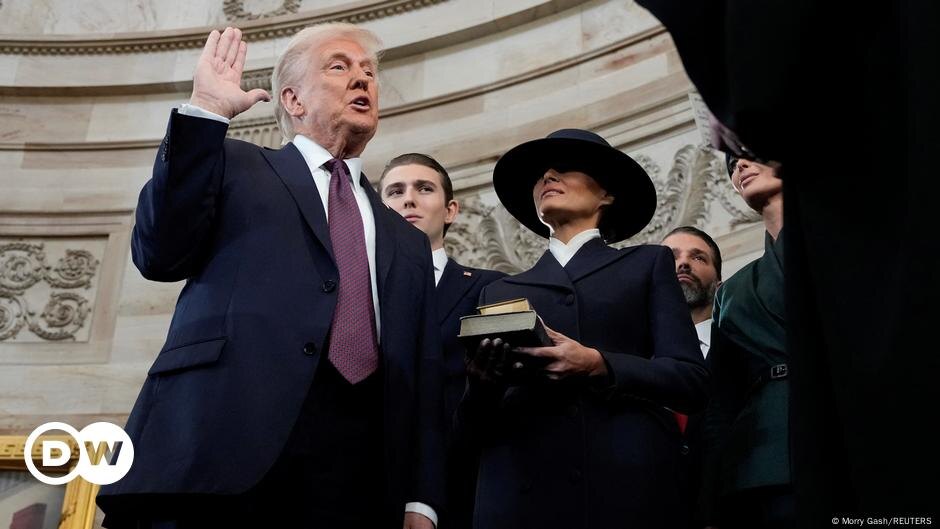 📜 Инаугурация аземи Капитолийде Жогорку Соттун төрагасы Жон Робертстин жетекчилиги астында өттү. Трамп анттын салттуу сөздөрүн айтып, колун үй-бүлөлүк Библияга жана Авраам Линкольндун Библиясына койду.