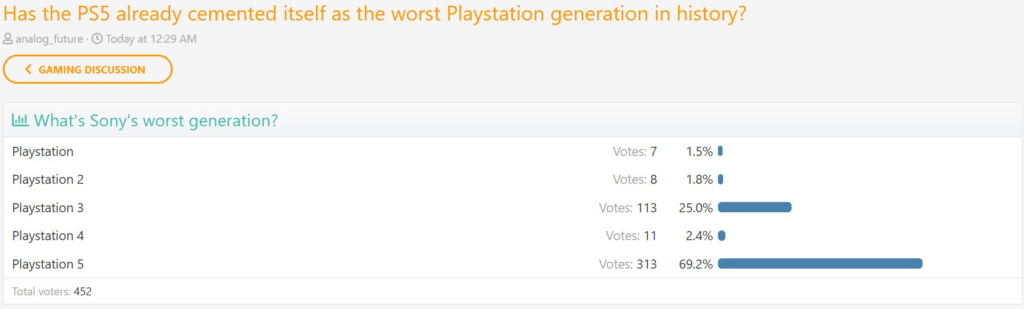 - Результаты опроса:PS5 — 69% (позорный рекорд).