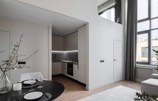 Читайте, вдохновляйтесь и выбирайте, что подходит именно вам Интерьер этой двухуровневой квартиры впечатляет лаконичностью и уютом. Его оформила музыкант, певица и хоумстейджер Диана Запуниди. Изменили буквально все: заново выстроили стены и разделили помещение на несколько функциональных зон. А благодаря высоте потолков в 5 м обустроили полноценный второй этаж. Посмотрим, как решили вопрос с хранением, — собрали крутые идеи из проекта. Прихожая компактная, но достаточно удобная. Справа от входной двери сделали встроенный глубокий шкаф для верхней одежды и обуви. В нем же находятся электрощиток и хозблок. Раздвижные зеркальные двери выполняют функцию ростового зеркала, добавляют глубины и света пространству. Кухня в нише совсем небольшая, но ее площадь задействована по максимуму. Гарнитур сделали угловым, хранение в нем организовано за высокими верхними фасадами, в нижних выдвижных ящиках и распашных шкафах. В небольшом холле есть зеркало в полный рост и консоль, которая может служить